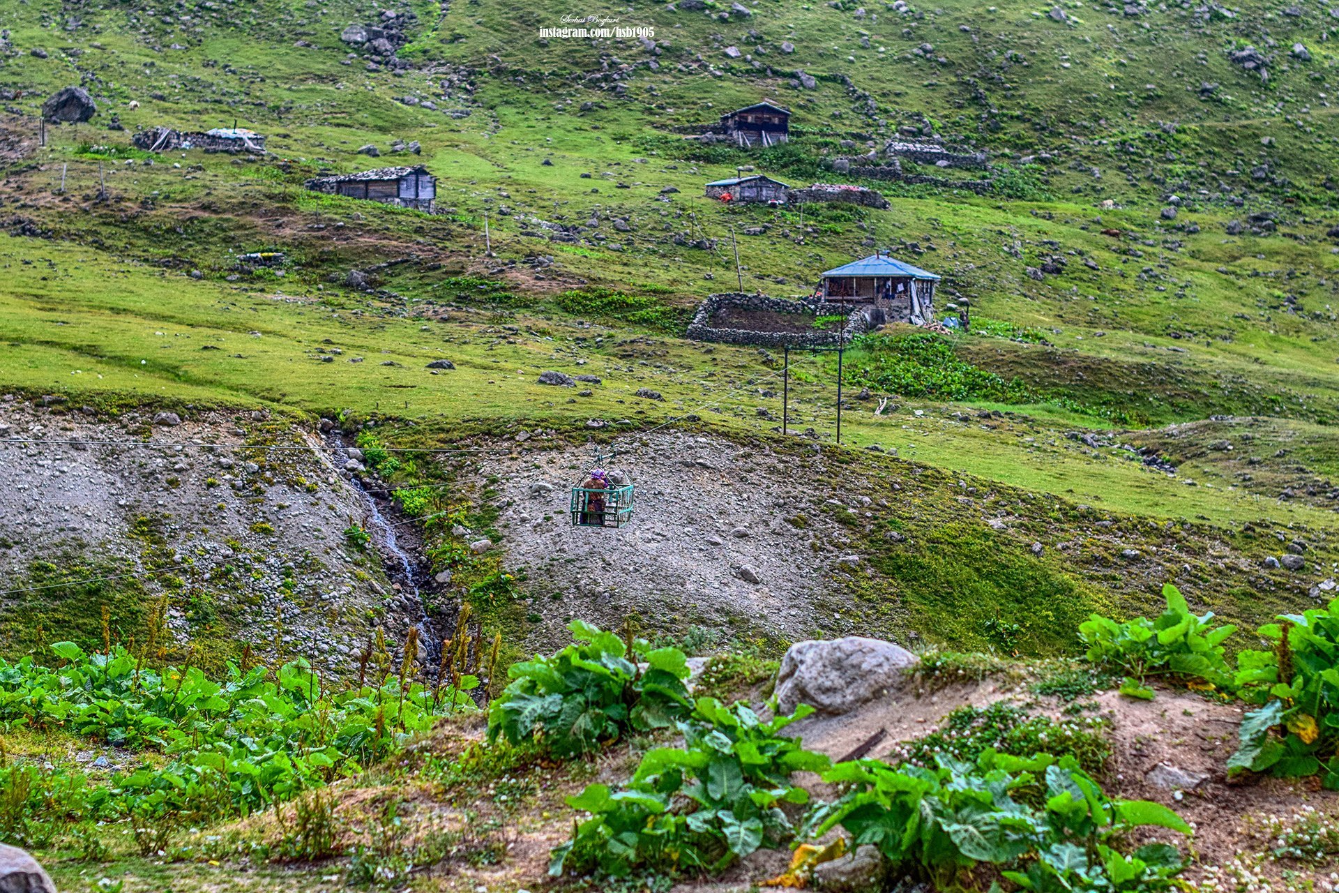 Yaylalar arasında ulaşım, el yapımı bu teleferiklerle sağlanıyor. Yaşlı bir kadın yaylalar arasında geçiş yaparken.