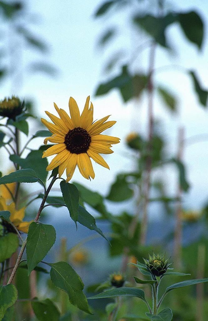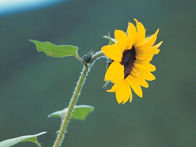 Gökyüzünün rengiyle iyi bir ahenk oluşturmuş, güzel bir ay çiçeği resmi…