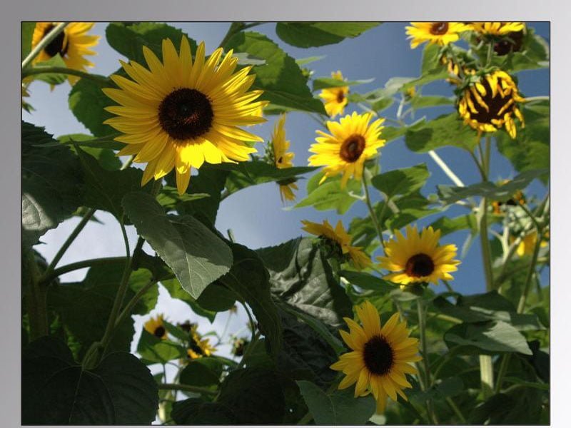 Bir başka ayçiçeği resmi daha… Kimisi tam açılmış, kimisi yeni yeni açıyor…