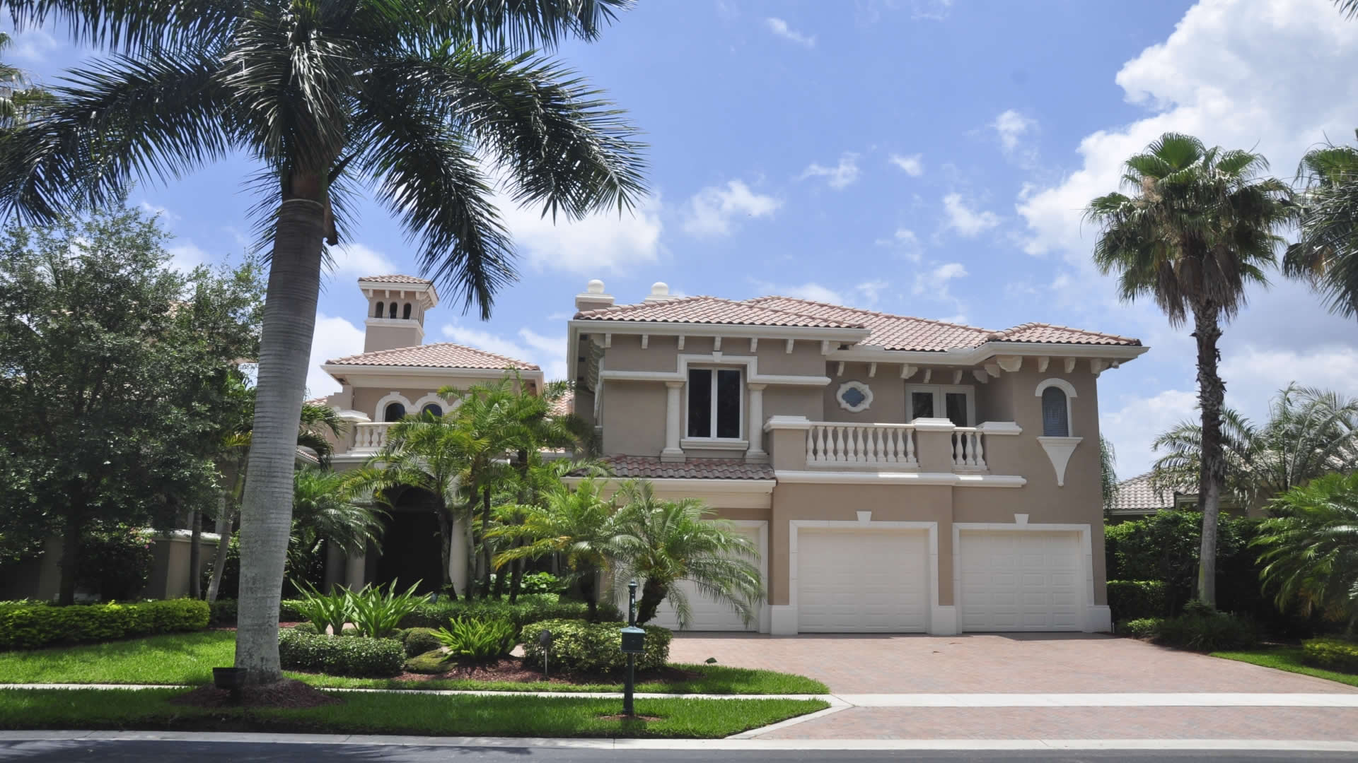 Palmiye ağaçlı,iki katlı şirin bir ev resimi.