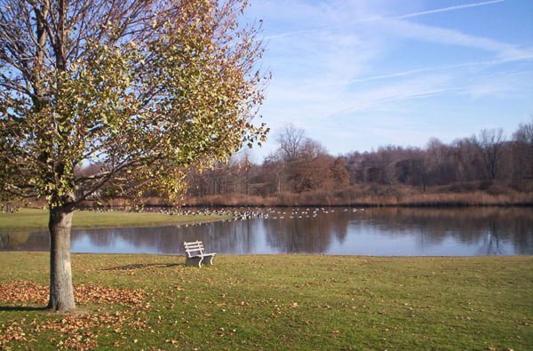 Dökülmüş yapraklar, kuşlar, göl ve ortada bank.. O bankın üzerine olmayı bir çok kişinin aklından geçireceğini tahmin edebiliyorum. Yeşil ve mavinin bir sonbahar buluşması…