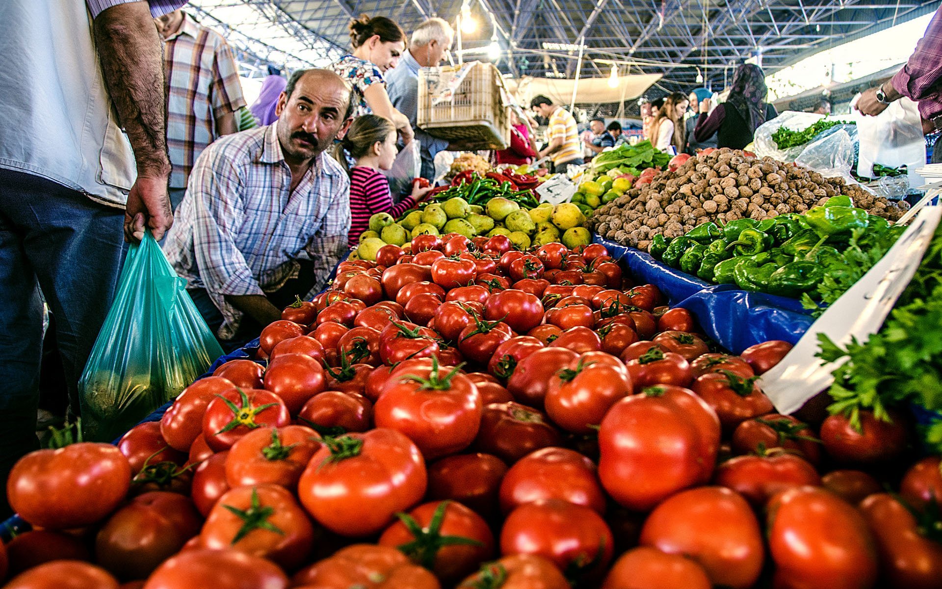 Antalya ili Kumluca ilçesinin Cuma pazarındaki pazarcı ve domatesleri… Fotoğrafcı (Photographer): Melissa Maples