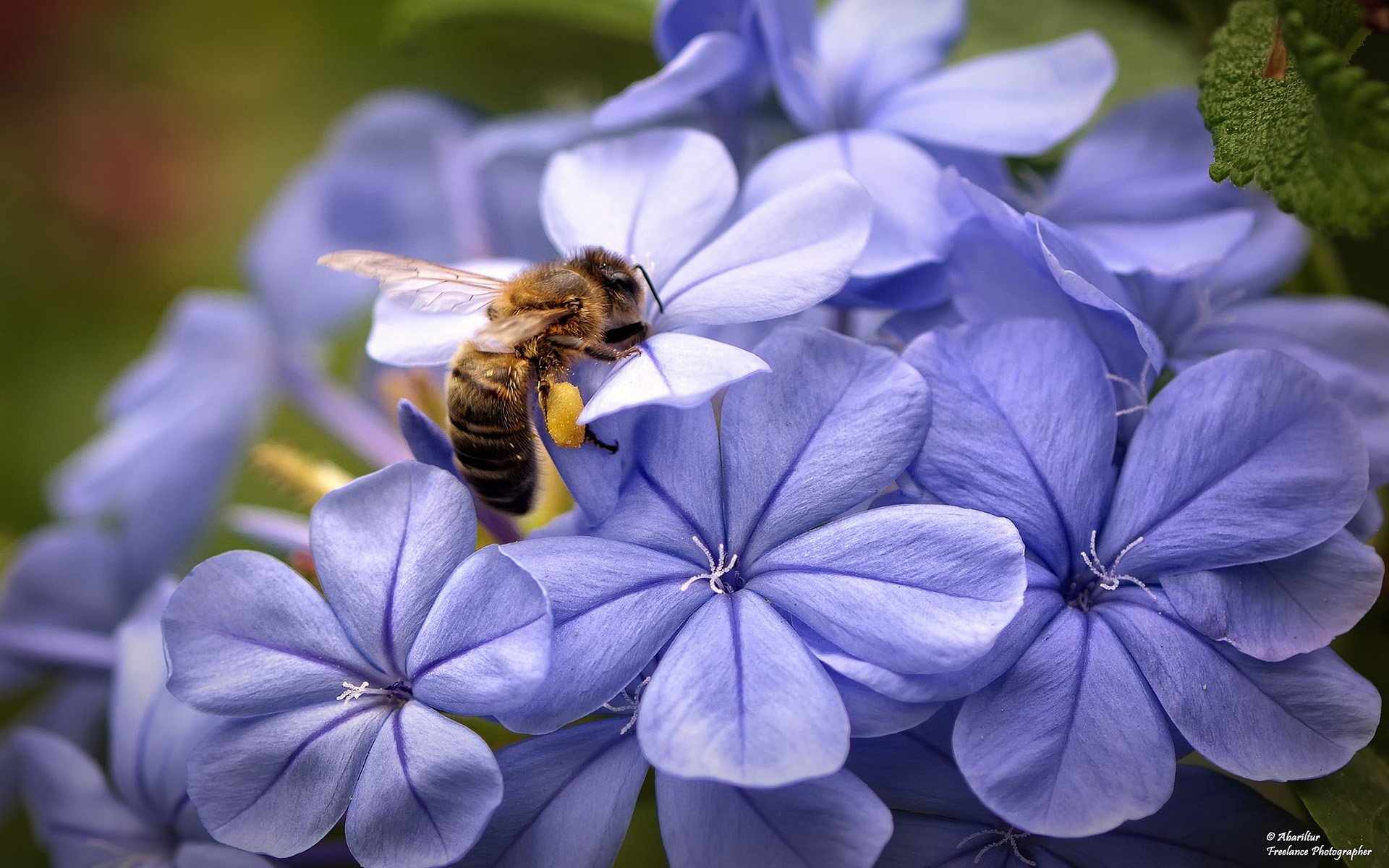 Mor Plumbago çiçeği üzerindeki arı… Fotoğrafcı (Photographer): Abariltur…