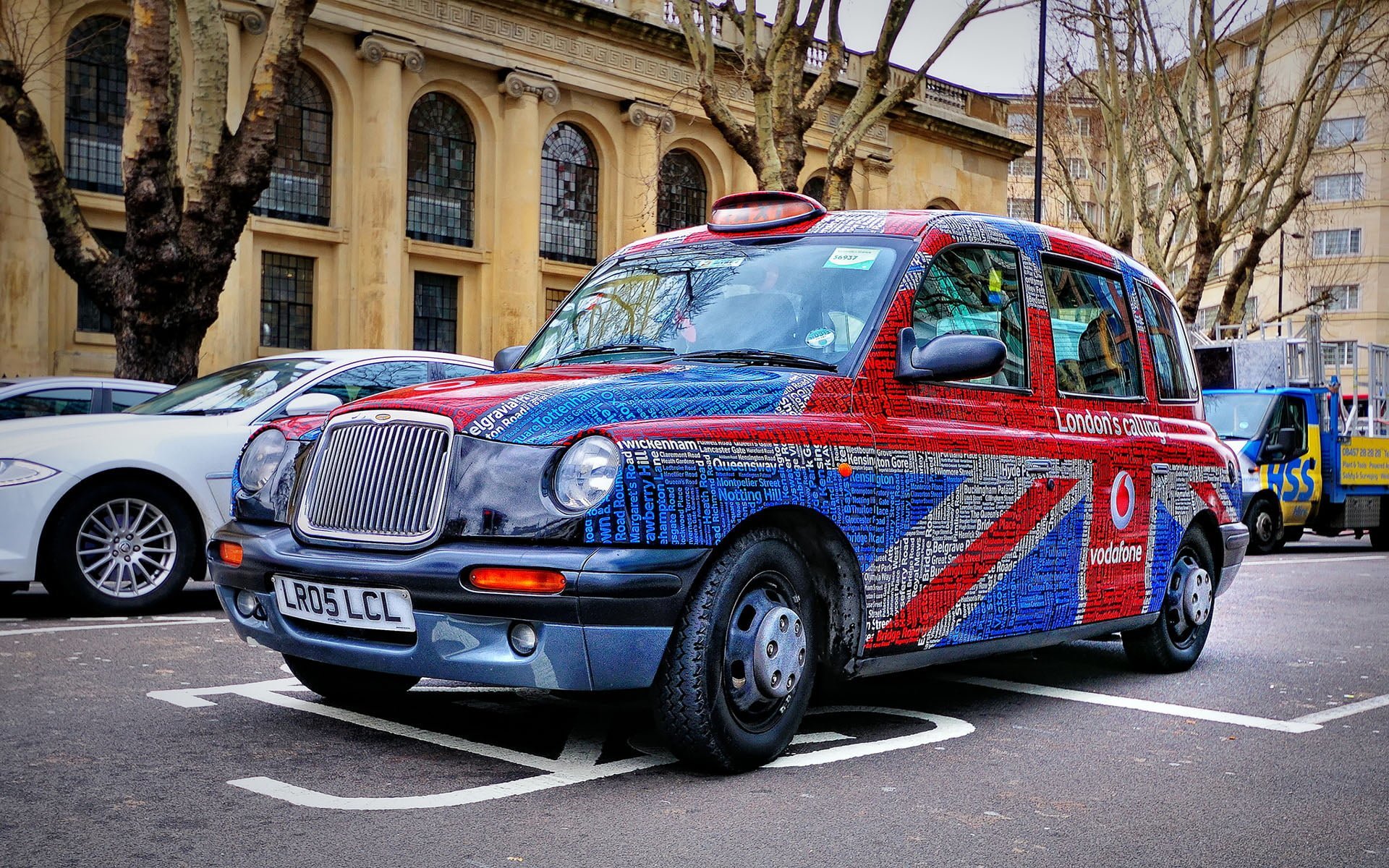 Londra’da hdr manzara eşliğinde Vodafone reklamlarını da taşıyan bir taksi… Fotoğrafcı (Photographer): Abariltur…