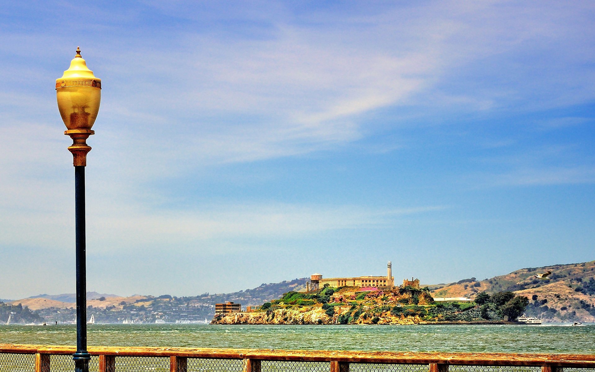 alcatraz adası ve sokak lambası