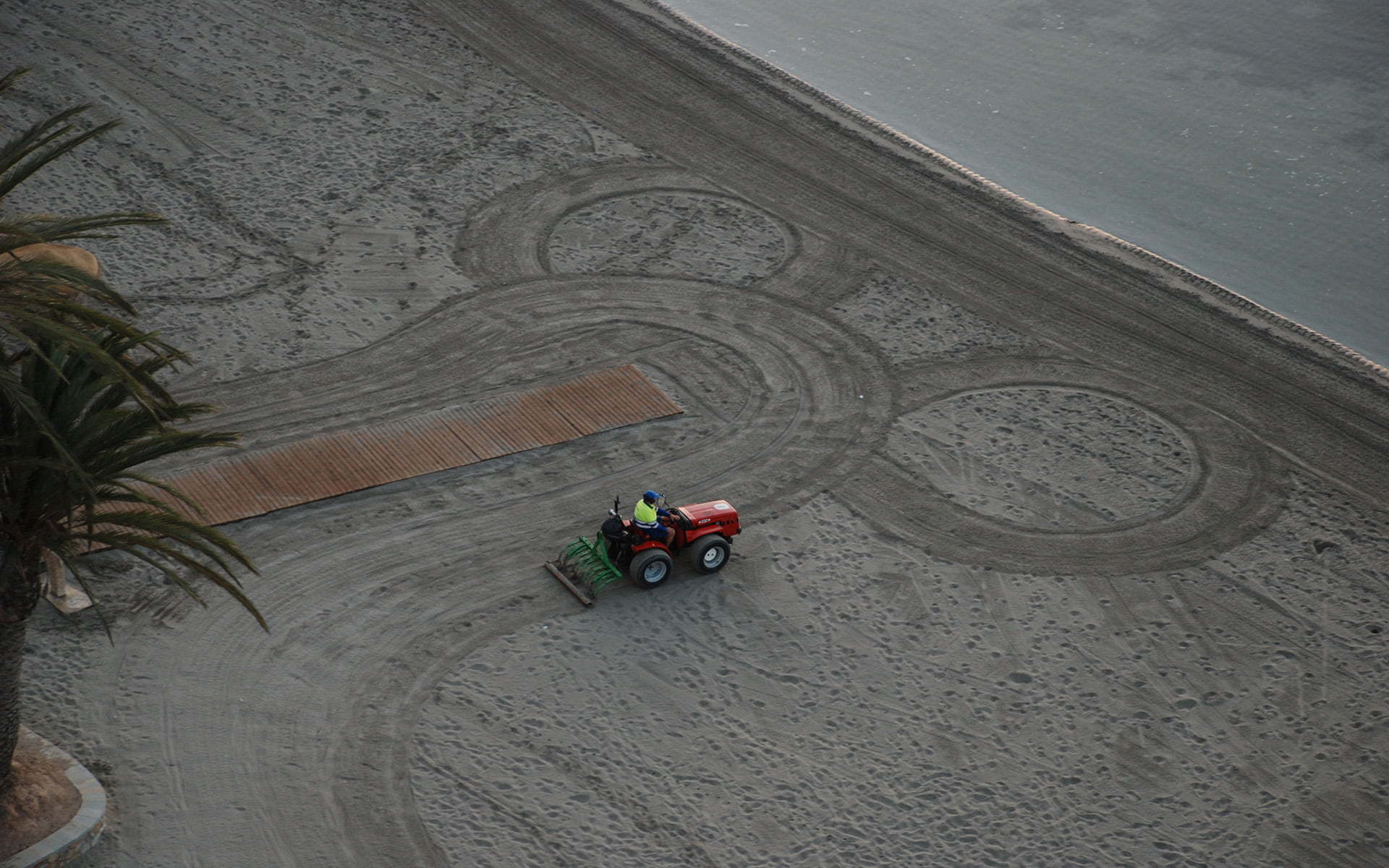 İspanya Mar Menor’da kumsaldaki düzleme çalışması yapan traktör… Fotoğrafcı (Photographer): Agueda Carrasco